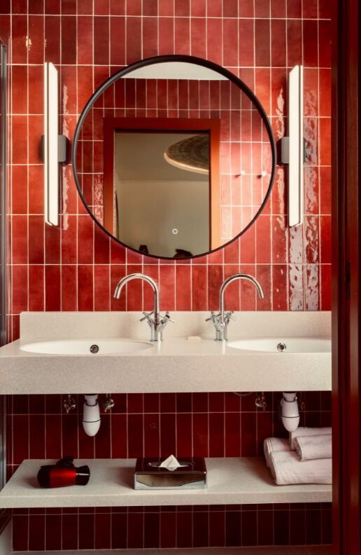 Elle souhaitait que l’hôtel conserve son caractère théâtral sans tomber dans le cliché classique rouge et noir du théâtre.