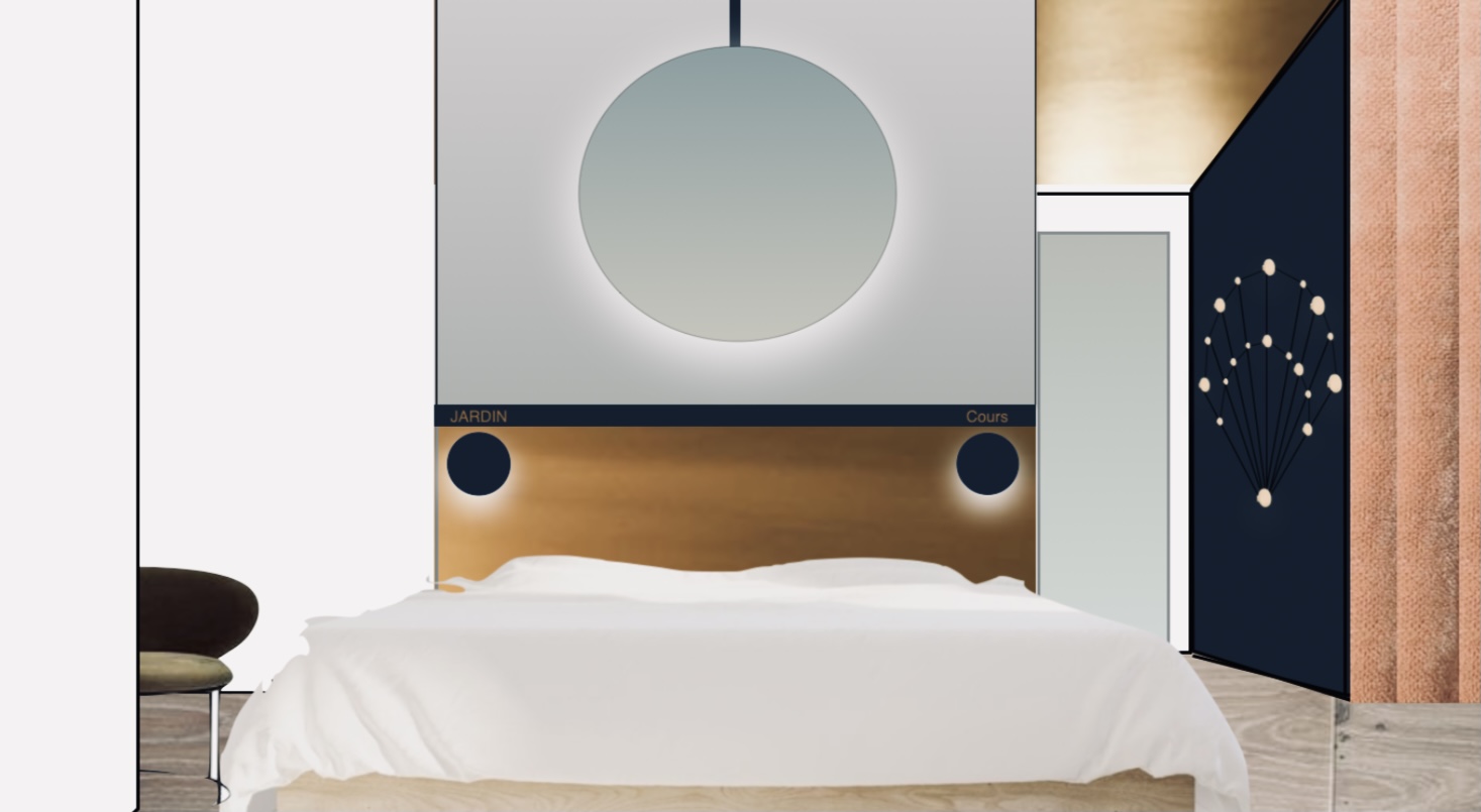 Comme nous allons le voir dans cette rénovation, de nombreux détails se référant au théatre vont apparaître tout au long de la réalisation des chambres: