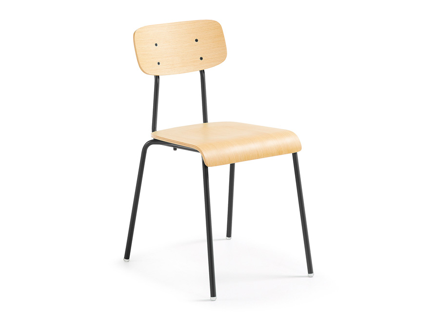 Petite chaise en métal noire et bois naturel contreplaqué. produit d’importation. bon prix.