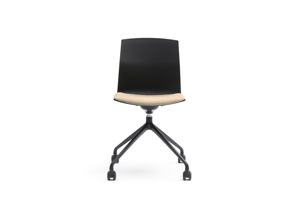 Chaise avec ou sans accoudoirs, idéal pour hôtellerie et les projets de bureau. Il existe des versions avec structure pivotant en aluminium ou en bois.