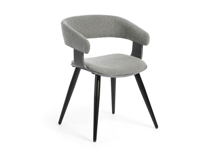 Structure en contreplaqué de peuplier, finition noyer foncé. Dossier et assise tapissé en tissu:choix gris clair et gris foncé.