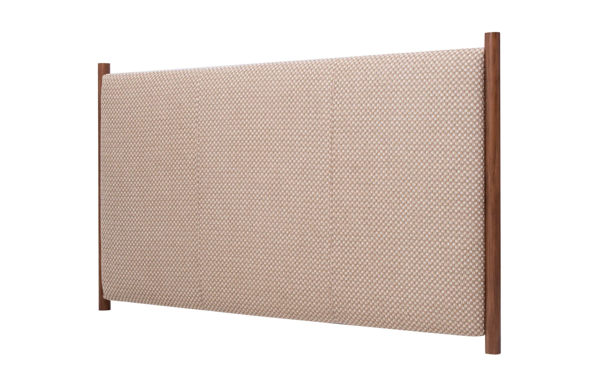 Le système d’ancrage mural est simple et pratique, avec cales pour un maintien optimal. Ce modèle peut également être fabriqué sur mesure au mètre carré et tapissé dans tous les tissus de notre collection, pour s’adapter parfaitement à votre intérieur.