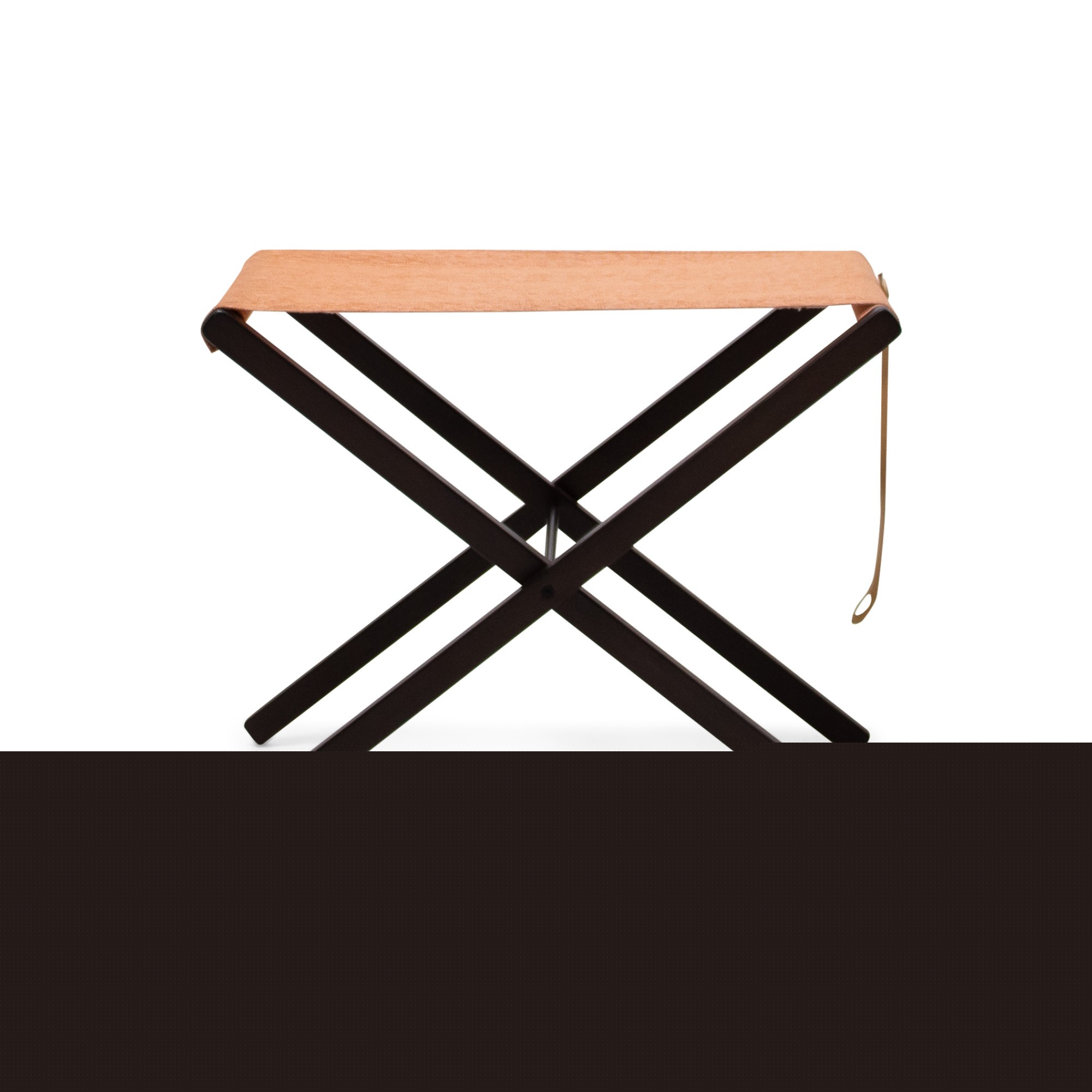 Il s’agit d’un porte-valises pliant au charme indéniable, alliant structure en bois et détails en métal. Sa poignée et sa sangle en cuir facilitent le pliage tout en apportant une touche élégante et raffinée.