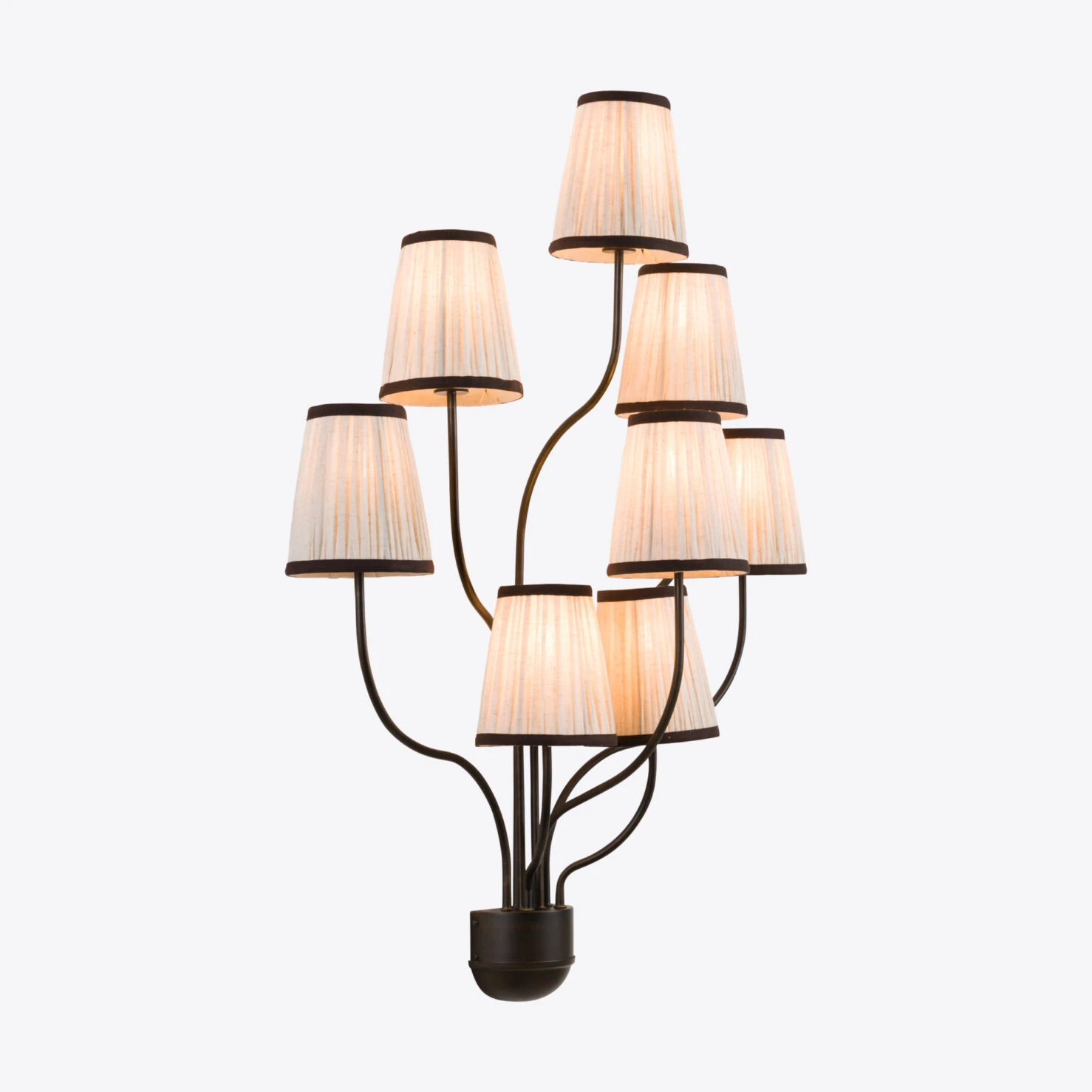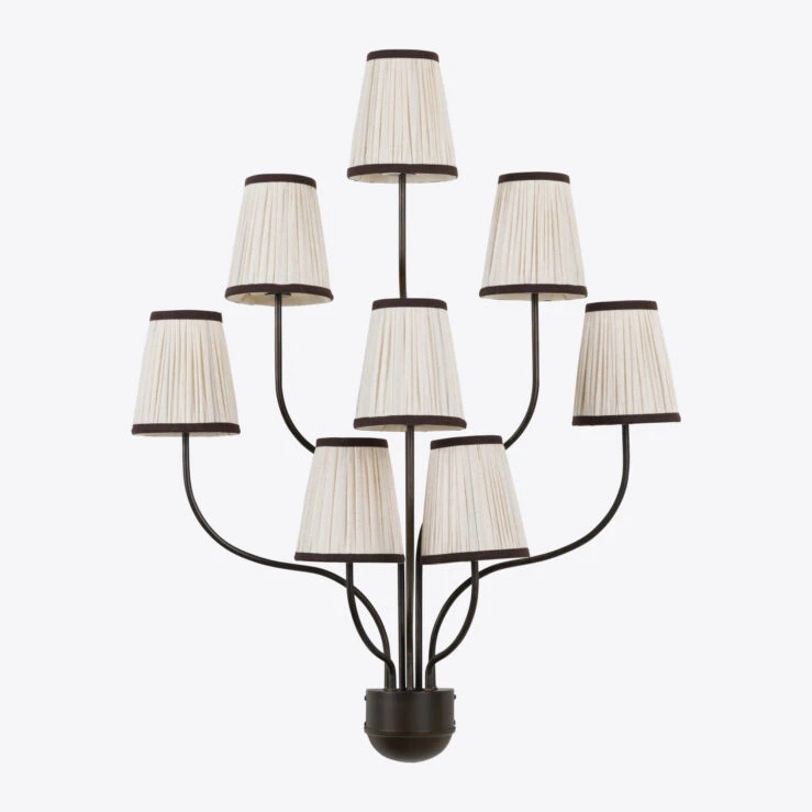 Illuminez n’importe quel espace avec cette lampe murale au style français artistique, dotée d’un design unique évoquant huit fleurs épanouies. Chaque lampe s’étend avec élégance depuis un support en bronze raffiné, créant un contraste saisissant avec les abat-jours blancs délicats.-poids 3,1kg -dimension 74×30,5xH94cm -materials tissu et métal -finishlaiton noir