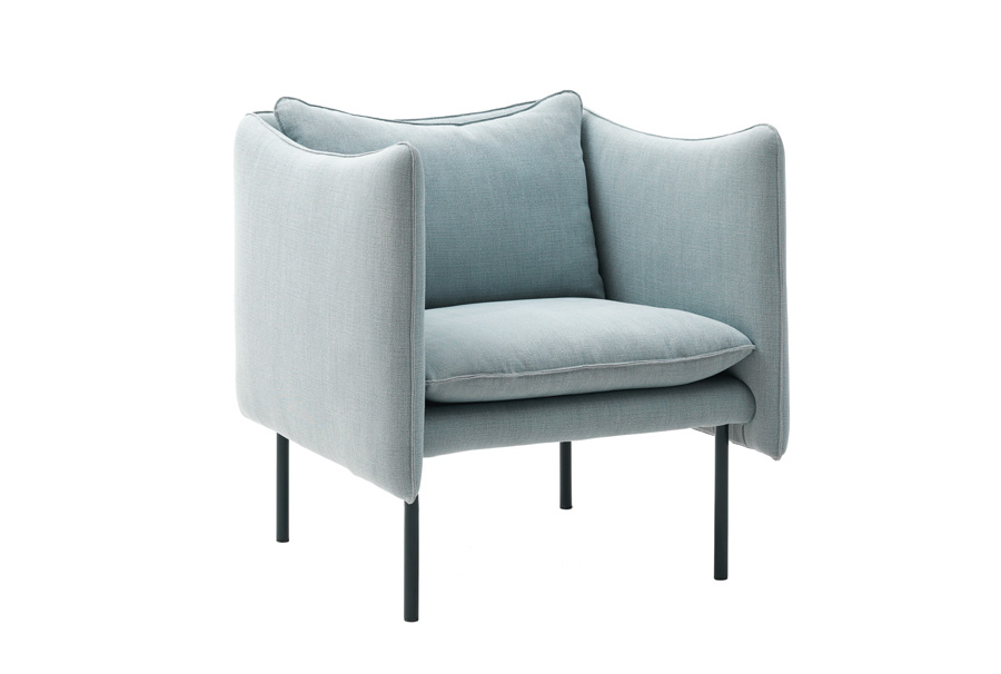 Fauteuil lounge aux lignes soft. Canapés et pouf assortis.