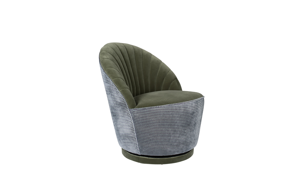 Fauteuil très décoratif en velours vert.