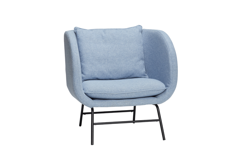 Fauteuil en tissu,pied métal, éxiste en bleu et noir. et bordeau et noir.