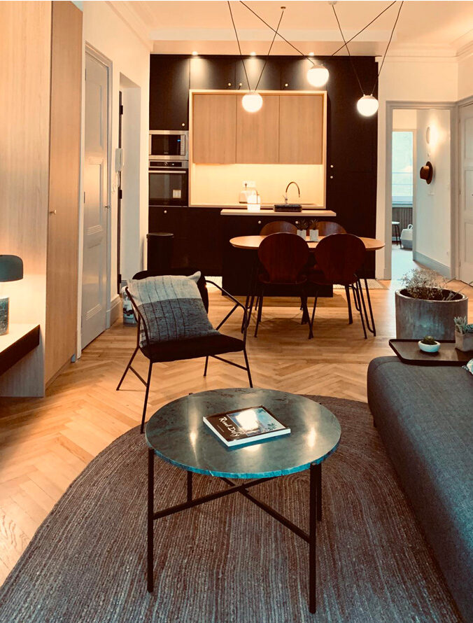 Dans le cas présent ,l’architecte d’intérieur-décorateur a su transformer un appartement de rentabilité moyenne en un petit bijoux de 3 chambres de rentabilité importante.